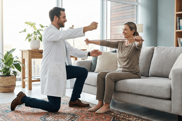 At-home physiotherapy for seniors delivered by licensed therapists supporting mobility, balance, and safety.